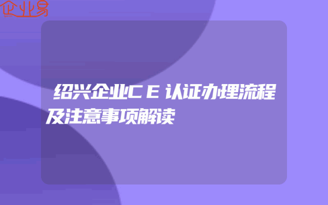 - 绍兴企业CE认证办理流程及注意事项解读