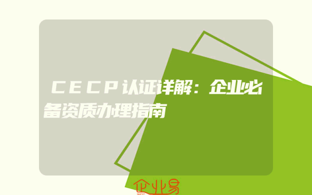 - CECP认证详解:企业必备资质办理指南