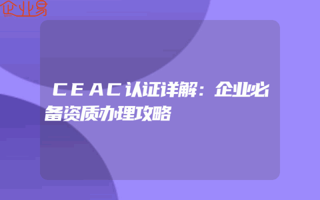 - CEAC认证详解:企业必备资质办理攻略