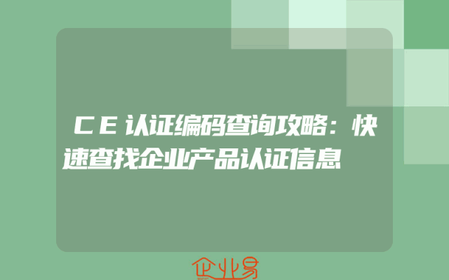 - CE认证编码查询攻略:快速查找企业产品认证信息