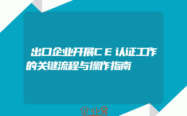 - 出口企业开展CE认证工作的关键流程与操作指南