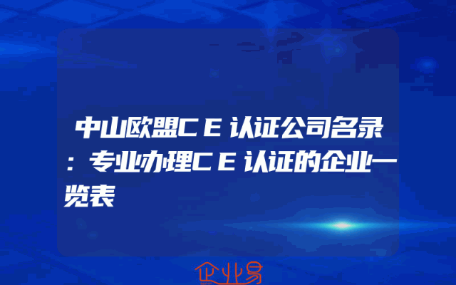 - 中山欧盟CE认证公司名录:专业办理CE认证的企业一览表