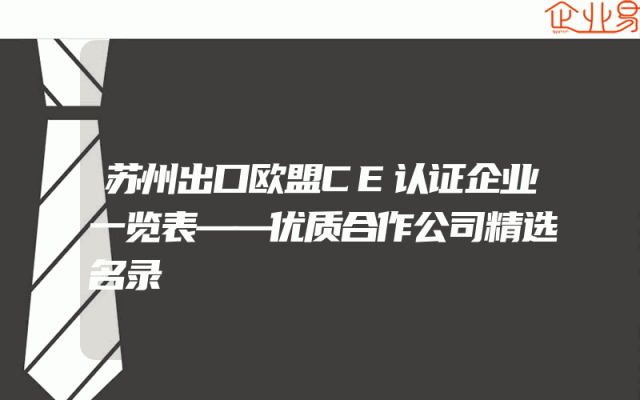 - 苏州出口欧盟CE认证企业一览表——优质合作公司精选名录