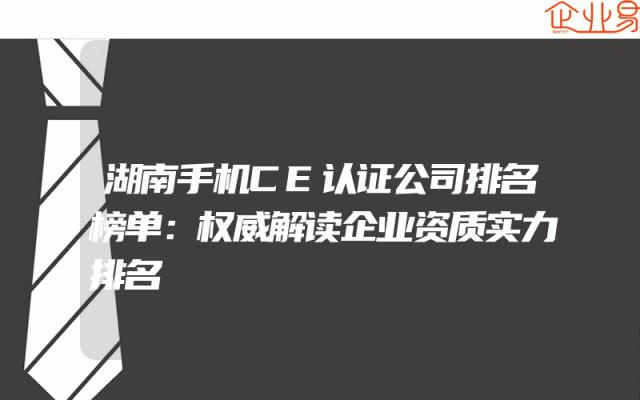 - 湖南手机CE认证公司排名榜单:权威解读企业资质实力排名