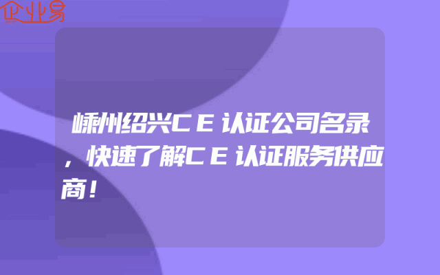 - 嵊州绍兴CE认证公司名录,快速了解CE认证服务供应商!