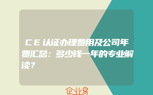 - CE认证办理费用及公司年费汇总:多少钱一年的专业解读?