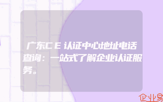 - 广东CE认证中心地址电话查询:一站式了解企业认证服务。