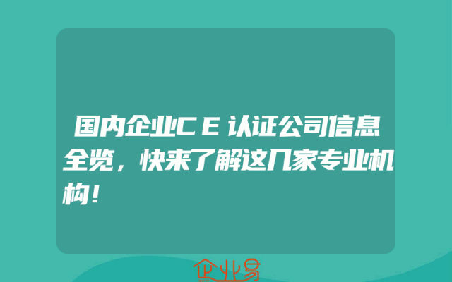 - 国内企业CE认证公司信息全览,快来了解这几家专业机构!