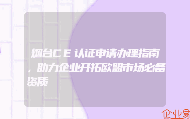 - 烟台CE认证申请办理指南,助力企业开拓欧盟市场必备资质