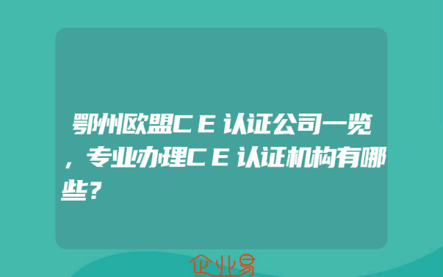 - 鄂州欧盟CE认证公司一览,专业办理CE认证机构有哪些?