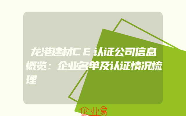 - 龙港建材CE认证公司信息概览:企业名单及认证情况梳理