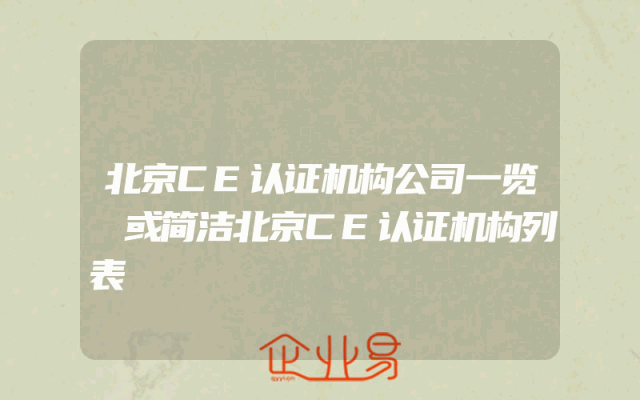 - 北京CE认证机构公司一览 或简洁北京CE认证机构列表