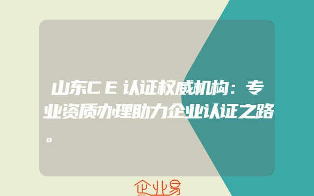 - 山东CE认证权威机构:专业资质办理助力企业认证之路。