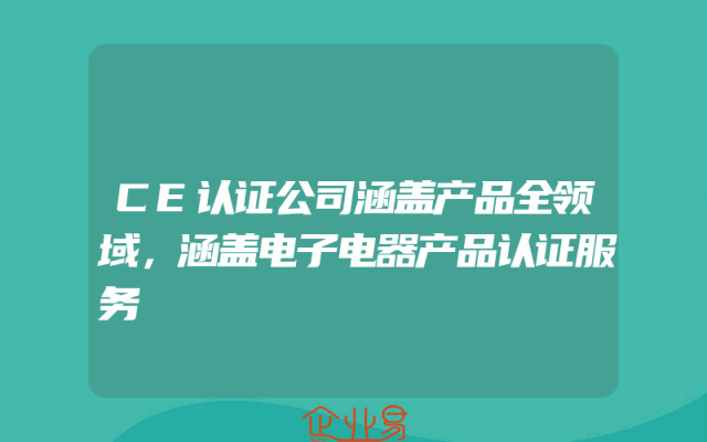 - CE认证公司涵盖产品全领域,涵盖电子电器产品认证服务