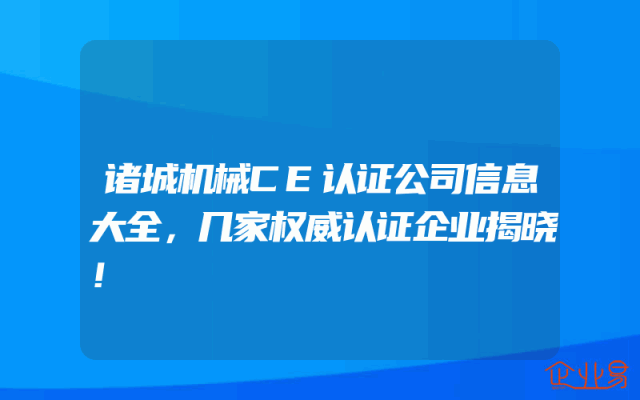 - 诸城机械CE认证公司信息大全,几家权威认证企业揭晓!