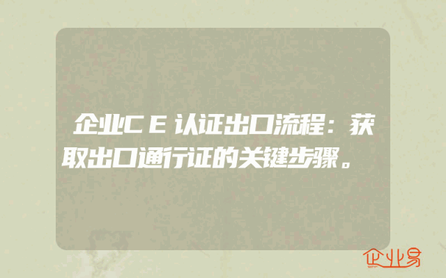 - 企业CE认证出口流程:获取出口通行证的关键步骤。