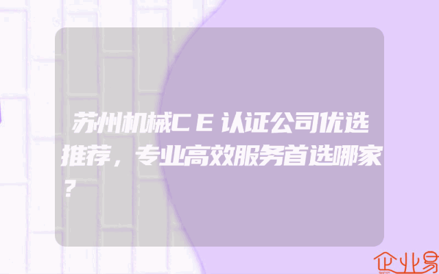 - 苏州机械CE认证公司优选推荐,专业高效服务首选哪家?