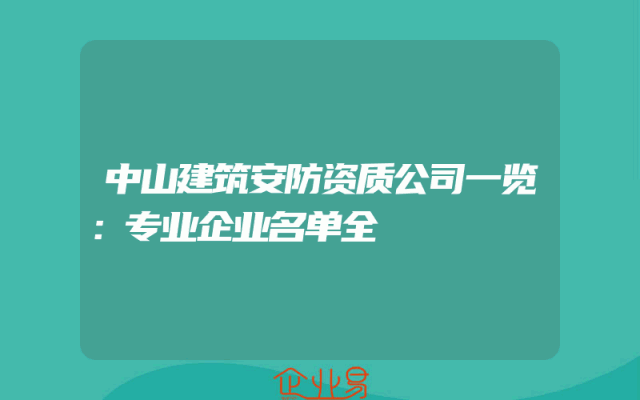 - 中山建筑安防资质公司一览:专业企业名单全