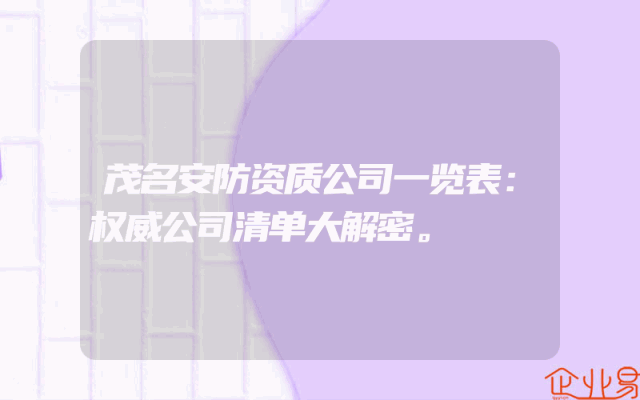 - 茂名安防资质公司一览表:权威公司清单大解密。