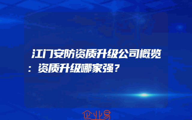- 江门安防资质升级公司概览:资质升级哪家强?