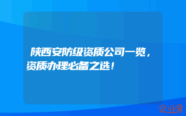 - 陕西安防级资质公司一览,资质办理必备之选!