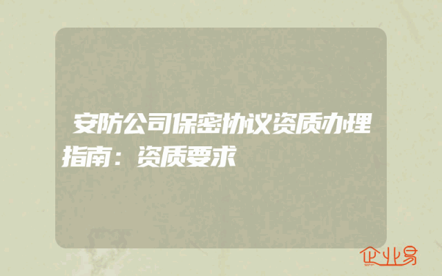 - 安防公司保密协议资质办理指南:资质要求