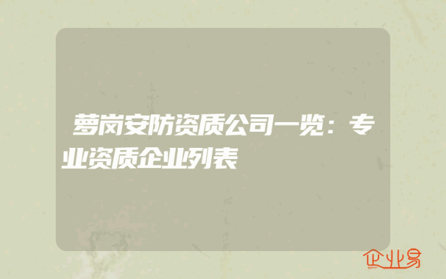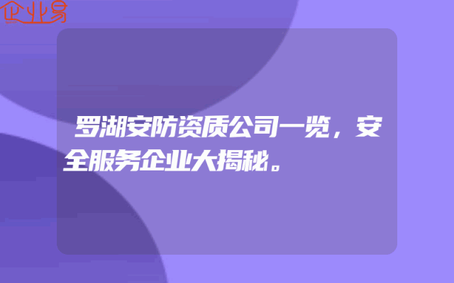 - 罗湖安防资质公司一览,安全服务企业大揭秘。