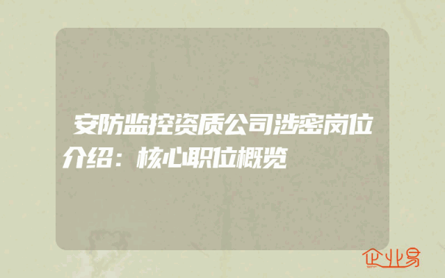 - 安防监控资质公司涉密岗位介绍:核心职位概览