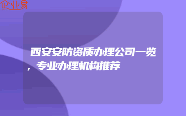 - 西安安防资质办理公司一览,专业办理机构推荐