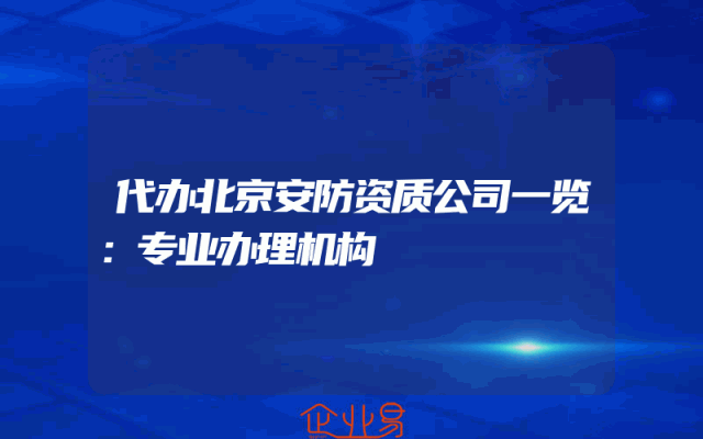 - 代办北京安防资质公司一览:专业办理机构的解析一、北京安防资质的重要性随着社会的不断发展,安防行业也逐渐成为一个不可或缺的重要领域。北京作为我国的首都和经济文化中心,安防行业更是发展迅速,各类安防企业如雨后春笋般涌现。在这样的背景下,安防资质