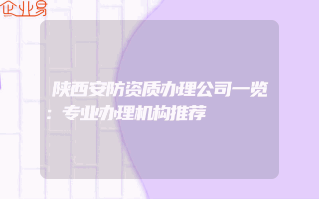 - 陕西安防资质办理公司一览:专业办理机构推荐