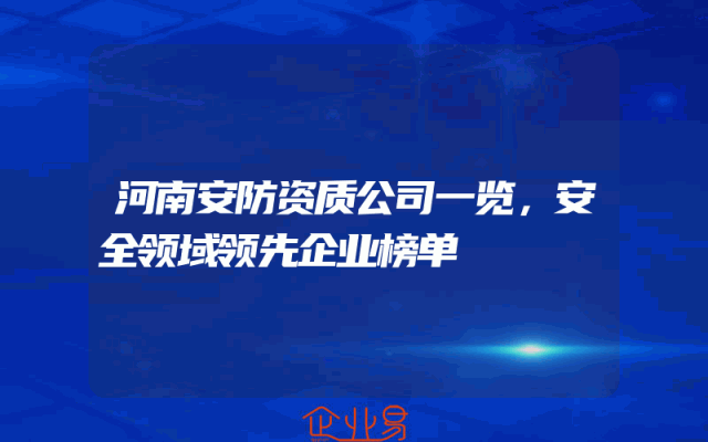 - 河南安防资质公司一览,安全领域领先企业榜单