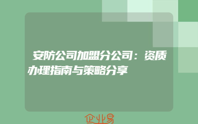 - 安防公司加盟分公司:资质办理指南与策略分享