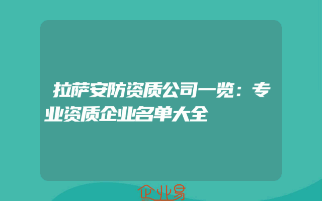 - 拉萨安防资质公司一览:专业资质企业名单大全