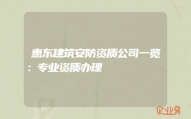 - 惠东建筑安防资质公司一览:专业资质办理解析一、惠东建筑安防资质概述在建筑行业,安防资质是保障公共安全的重要环节。惠东地区的建筑安防资质公司,致力于为企业提供专业的资质办理服务,确保建筑项目的安全与合规。这些公司的服务涵盖建筑设计、施工、监理