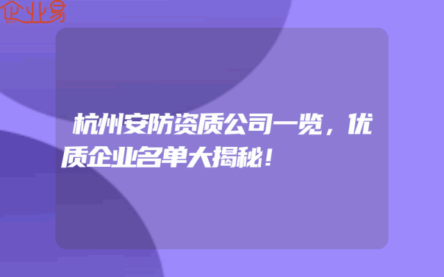 - 杭州安防资质公司一览,优质企业名单大揭秘!