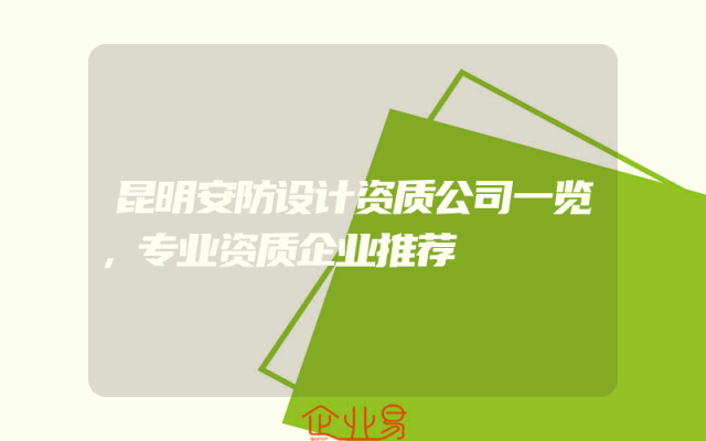 - 昆明安防设计资质公司一览,专业资质企业推荐