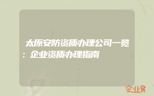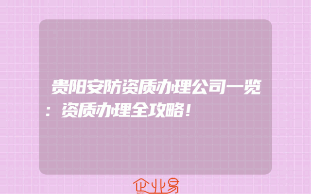 - 贵阳安防资质办理公司一览:资质办理全攻略!
