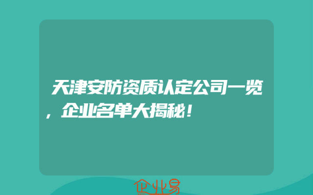 - 天津安防资质认定公司一览,企业名单大揭秘!