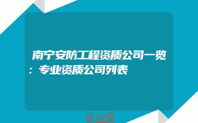 - 南宁安防工程资质公司一览:专业资质公司列表