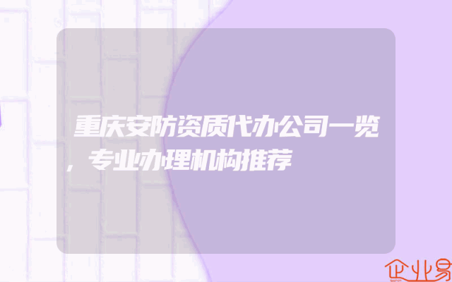 - 重庆安防资质代办公司一览,专业办理机构推荐