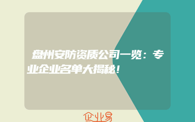 - 盘州安防资质公司一览:专业企业名单大揭秘!