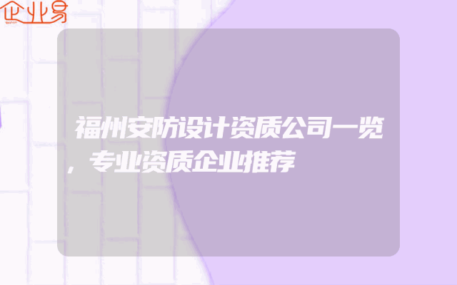 - 福州安防设计资质公司一览,专业资质企业推荐