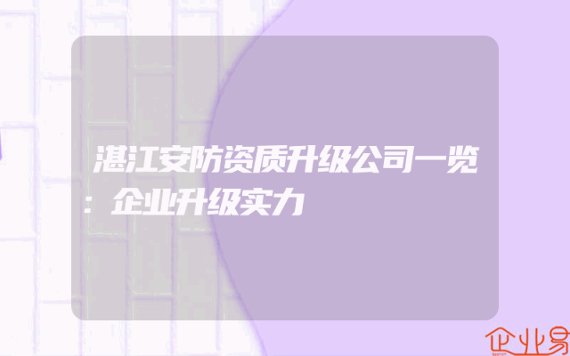 - 湛江安防资质升级公司一览:企业升级实力解析一、引言随着社会的快速发展和进步,安防行业的需求也在不断提升。在这样的背景下,湛江的安防企业积极响应市场需求,不断进行自我完善和提升。许多企业为了实现更高层次的业务拓展和市场占有,正在进行安防资质的