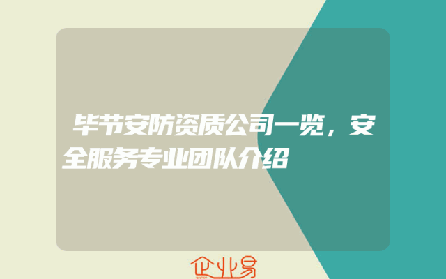 - 毕节安防资质公司一览,安全服务专业团队介绍
