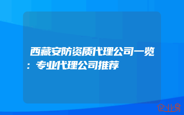 - 西藏安防资质代理公司一览:专业代理公司推荐