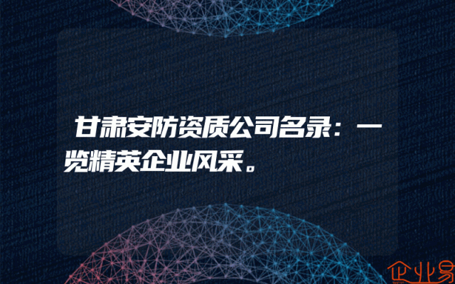 - 甘肃安防资质公司名录:一览精英企业风采。