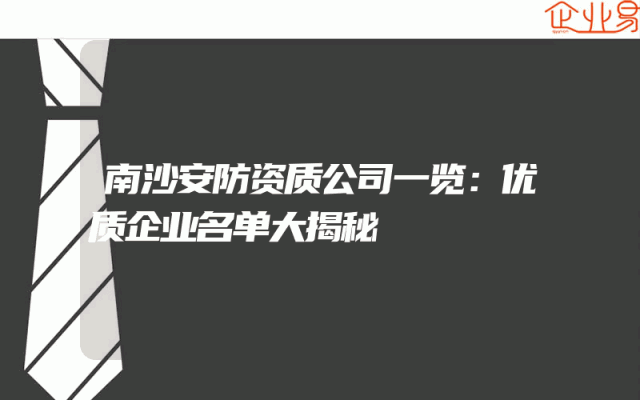 - 南沙安防资质公司一览:优质企业名单大揭秘