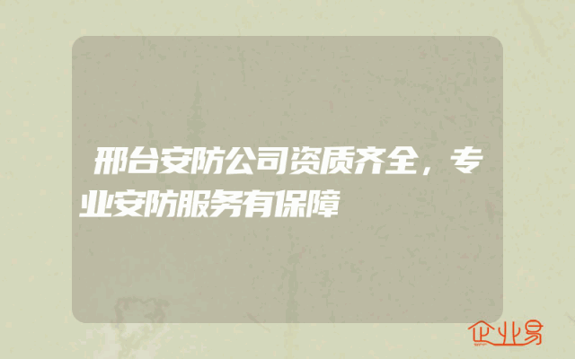 - 邢台安防公司资质齐全,专业安防服务有保障