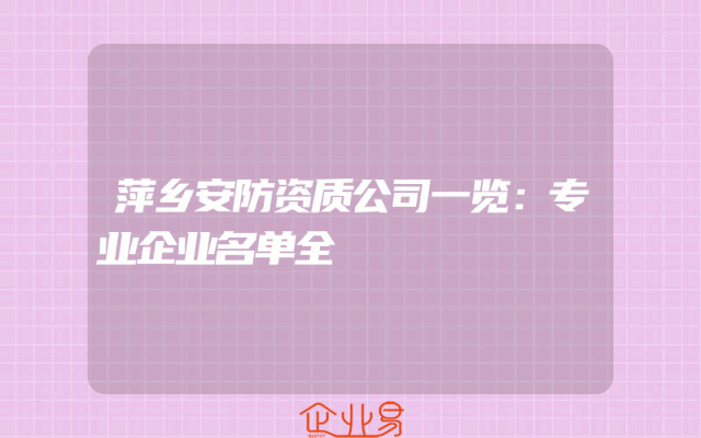 - 萍乡安防资质公司一览:专业企业名单全解析一、引言随着社会的不断发展,安防行业作为保障社会安全的重要一环,其影响力日渐加强。萍乡作为江西省的一个重要城市,其安防行业发展势头强劲。在此背景下,了解萍乡市的安防资质公司显得尤为重要。本文将详细解析
